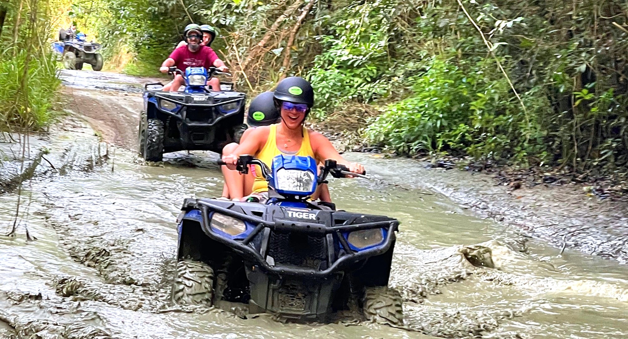 Our ATV tour covers 16 miles of tropical terrain. It begins at the Gecko’s office in Frederiksted. After checking in, getting a safety and rules briefing and a lesson on the operation of the machine, your adventure begins. First you will begin by riding along the west end coast line before heading up into the rainforest. We make a stop at an overlook that gives you fantastic views of the west end. As we continue, we make our way to the top of Mt. Stewart where you get amazing vistas of the north and south shores and surrounding areas. On the return trip, we visit plantation ruins from the 1700’s where you get time to explore and take photographs. From there we descend through the Sub-Tropical Rain Forest before ending at the Gecko’s office. You are sure to have a fun filled adventure on St. Croix.